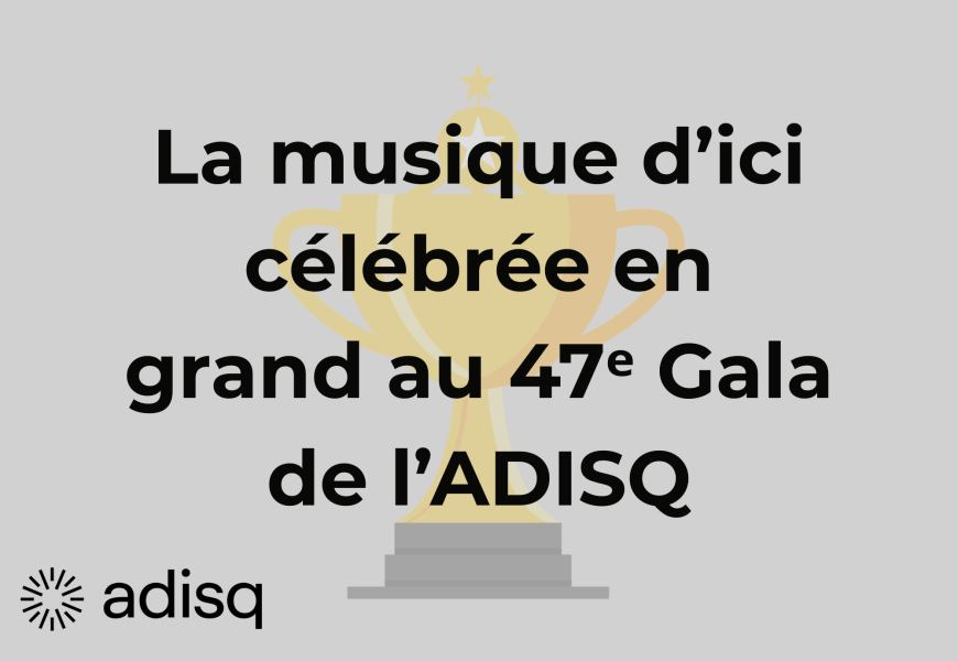 Montréal, 9 novembre 2025 — La 47ᵉ édition du Gala de l’ADISQ a célébré hier soir le meilleur de la musique d’ici, récompensant dix artistes et formations qui ont marqué l’année. Animée avec humour et énergie par Pierre-Yves Roy-Desmarais, la soirée a mis en lumière une scène québécoise vibrante, riche en diversité et en talent.