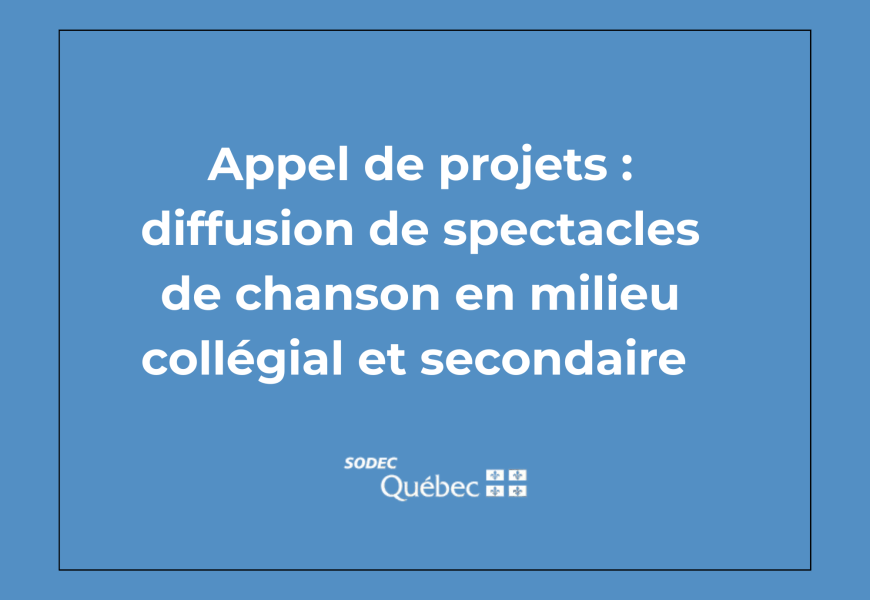 La SODEC lance un nouvel appel de projets visant la diffusion de spectacles de chanson dans les milieux collégial et secondaire à travers le Québec.