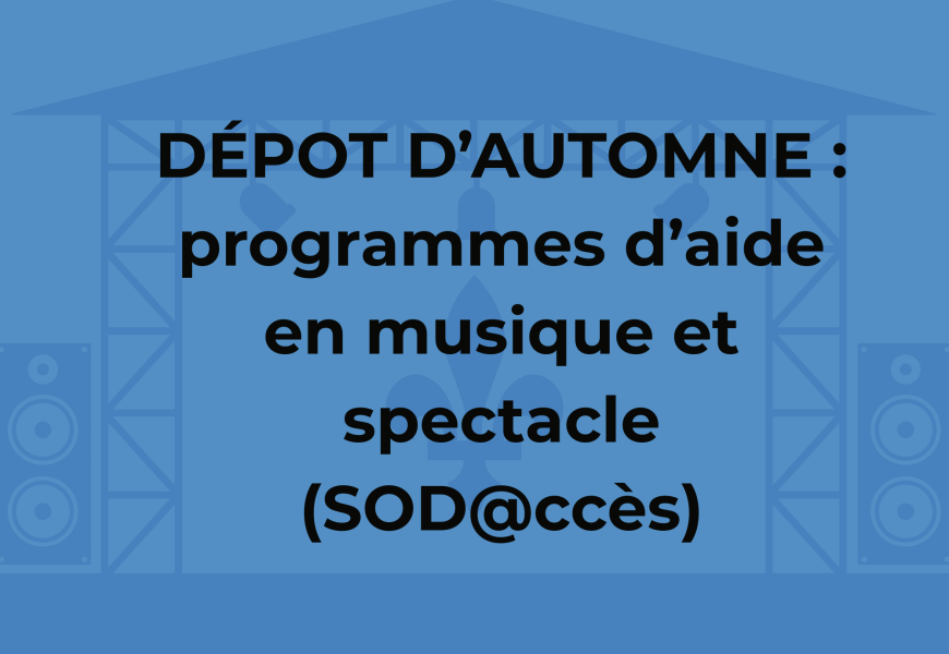La SODEC ouvre son portail sécurisé SOD@ccès pour le dépôt des demandes aux programmes d’aide PAPEMS (promotion pour les entreprises en musique et du spectacle) et PAGEM (gérance et édition musicale), et ce, jusqu’au jeudi 27 novembre 2025, 23 h 59.
